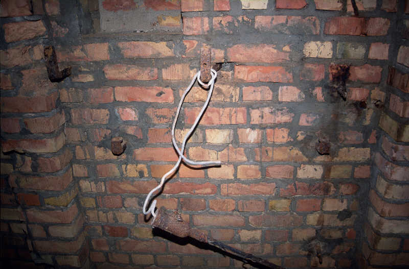 Gewölbestruktur mit Ausgang für Mannschaften - im Hintergrund bereits gestohlene Eisen- halterungen der Fensterverschlüsse |