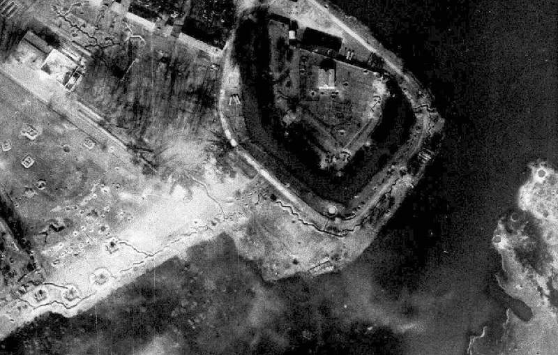 Gegen 1890 wurde die Brückenkopfschanze vollständig niedergelegt, etwa 10 Jahre später wiederfuhr der rechten Flügellünette das gleiche Schicksal. Lediglich die linke Flügellünette wurde belassen und schützte zusammen mit der gleichwohl militärisch völlig veralteren Lünette B die Südflanke der Kernfestung. In den Abwehrkämpfen 1945 wurde auch die linke Flügellünette miteinbezogen und überstand bis auf geringe Beschädigungen durch Artillerietreffer die Kampfhandlungen. In den 50er Jahren des 20.Jh. wurden die Wälle und Gräben der Lünette durch die Rote Armee, welche das Gelände nutzte, eingebnet und als Parkplatz gebraucht. Lediglich ein schwer lesbarer Teil des südlichen Graben ist noch erhalten. | |