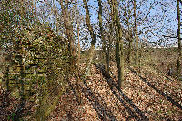In den Abwehrkämpfen 1945 wurde auch die Lünette C in das Verteidigungssystem integriert. An der rechten Wallflanke sind Reste eines Grabensystem erkennbar. Vermutlich befand sich rechts vom Reduit eine Stellung für schweres MG oder Granatwerfer, die die Hauptstraße sichern sollte. |