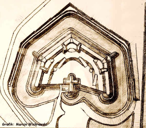 Kehlbereich der Lünette von ehemaligen Waffenplatz F aus gesehen. |